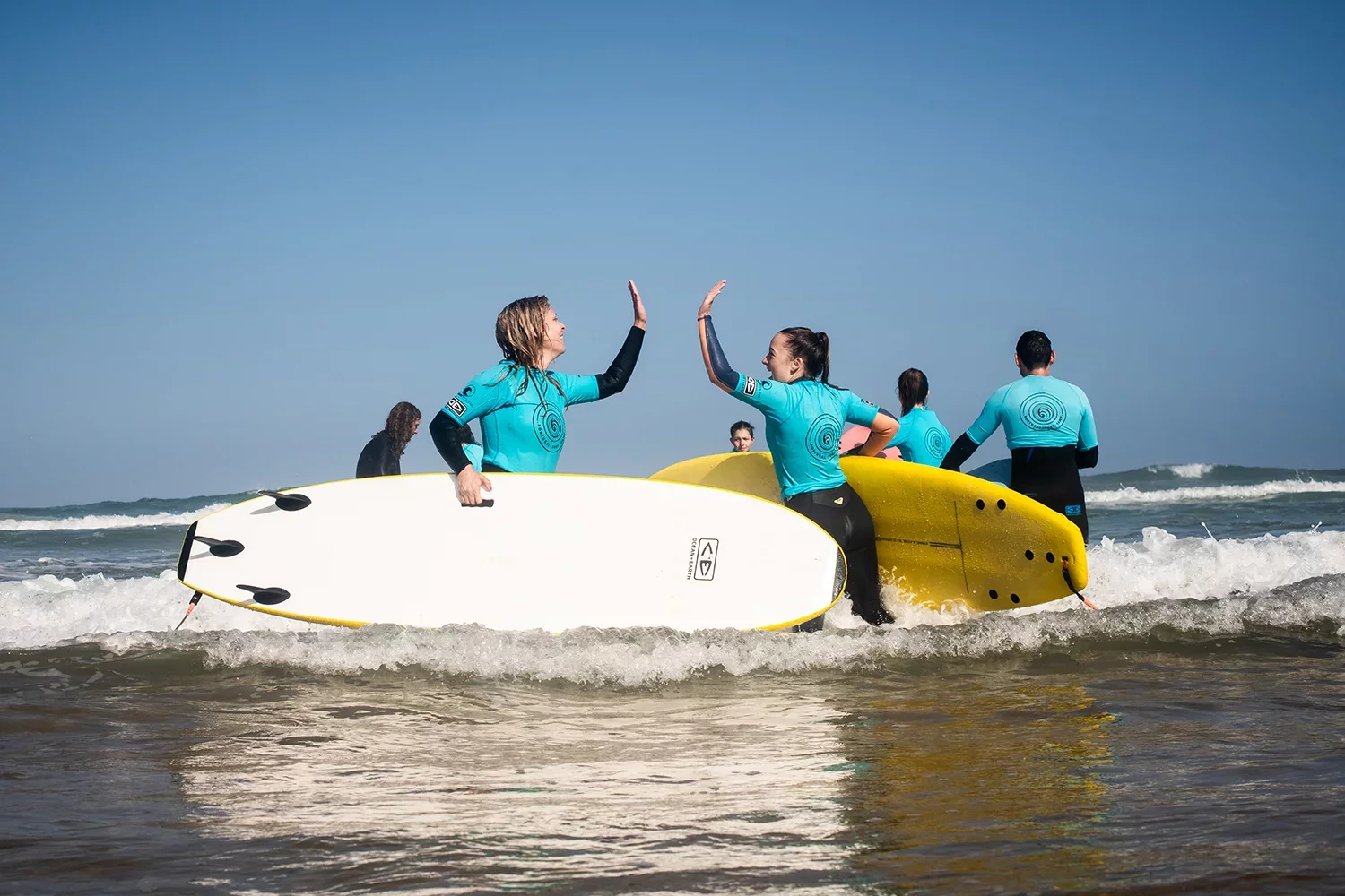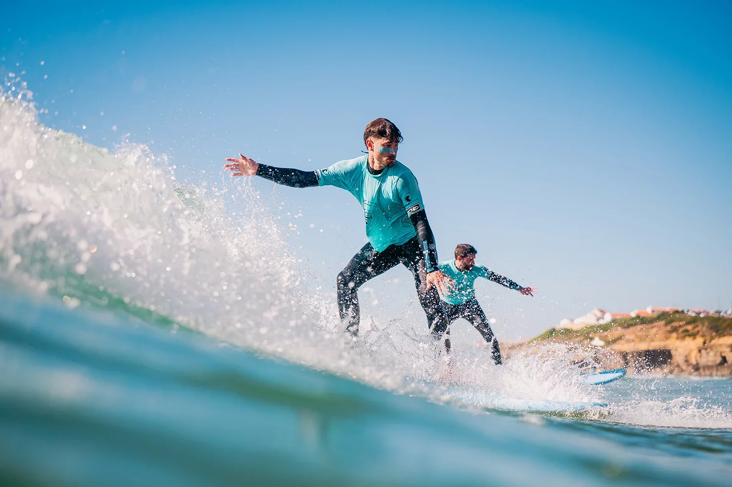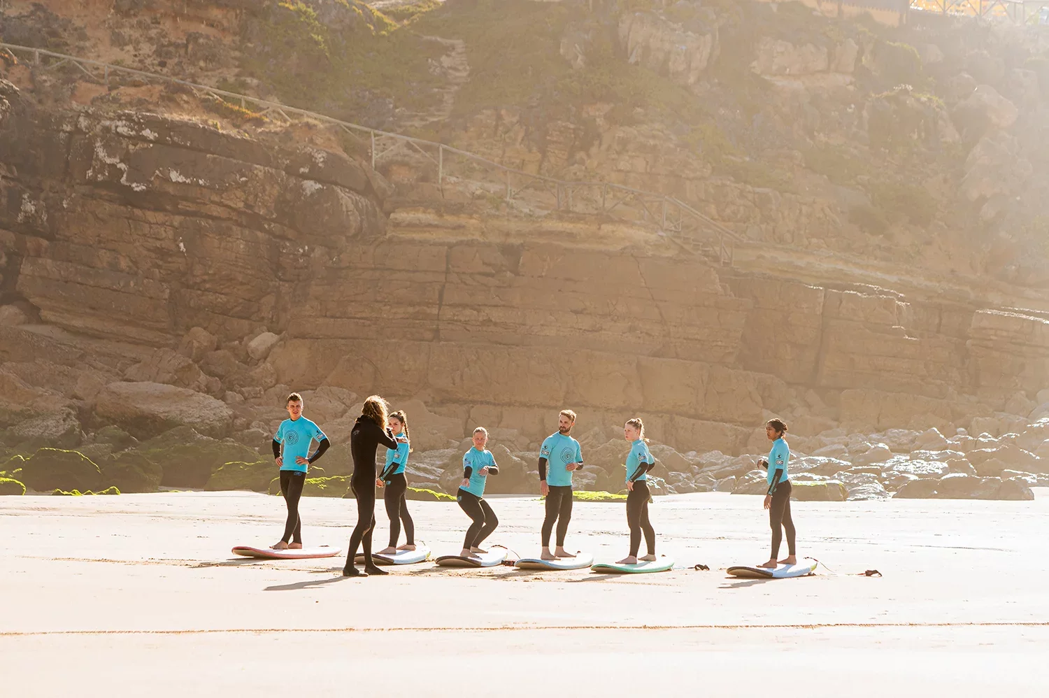 Die Kurse finden an fünf Tagen in der Woche á 3 Stunden (Montag bis Freitag) inkl. Material statt und je nach Wellenbedingungen kann es auch vorkommen, dass der Surfkurs vor dem Frühstück stattfindet. Wir surfen meist am Praia São Julião (ca. 6 km vom Camp entfernt, Transfer zum Spot ist beim Surfkurs inkludiert), alternativ an anderen Stränden, je nach Können und Bedingungen. Der Kurs kombiniert praktische Einheiten mit Theorie, die Themen reichen von Materialkunde und Wellenverständnis bis hin zur Surfgeschichte.