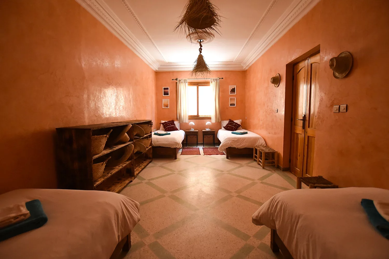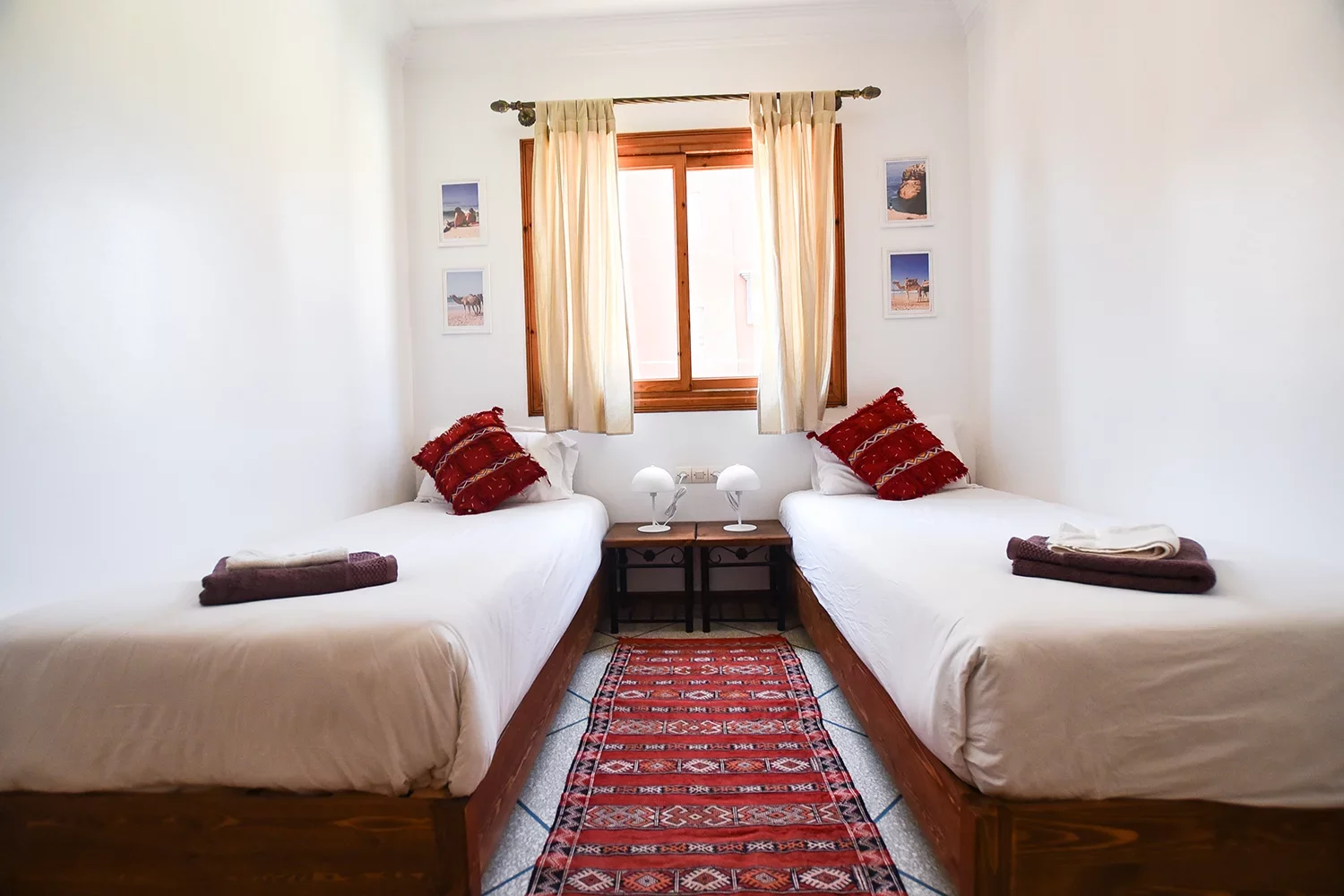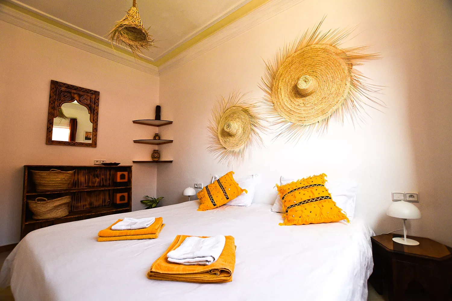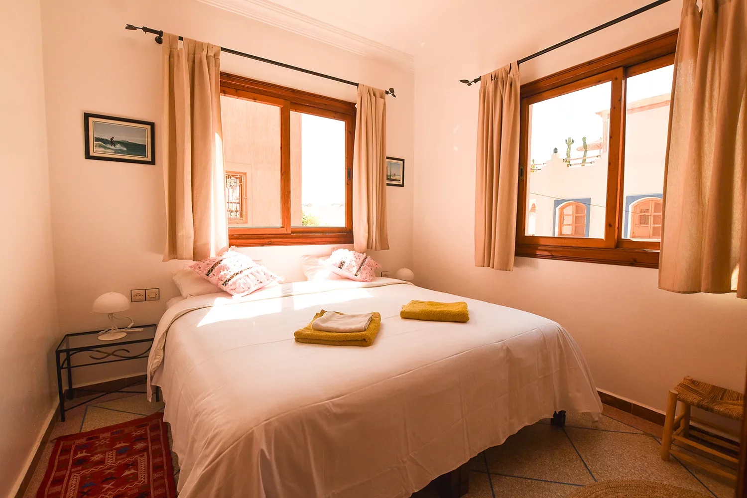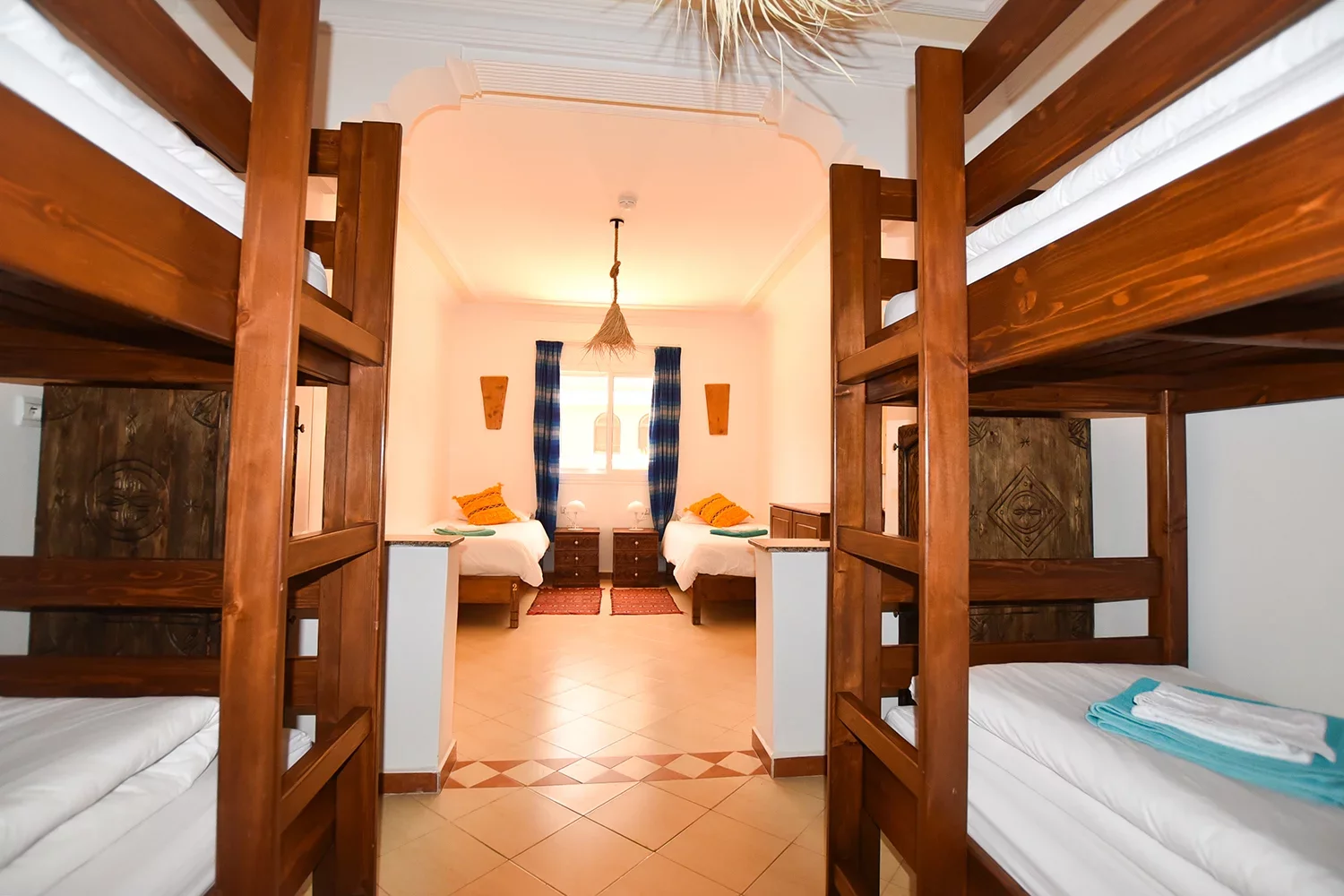 Das Surfhouse verbindet Strandfeeling und marokkanische Kultur mit dem lässigen Surfer-Lifestyle. Hier finden bis zu 34 Gäste Platz, um gemeinsam den perfekten Surfurlaub zu erleben. Jedes Zimmer ist so gestaltet, dass du dich wie zu Hause fühlst – gemütlich und funktional! Vor dem Haus findest ein paar Parkplätze und WLAN ist im Haus kostenfrei verfügbar.