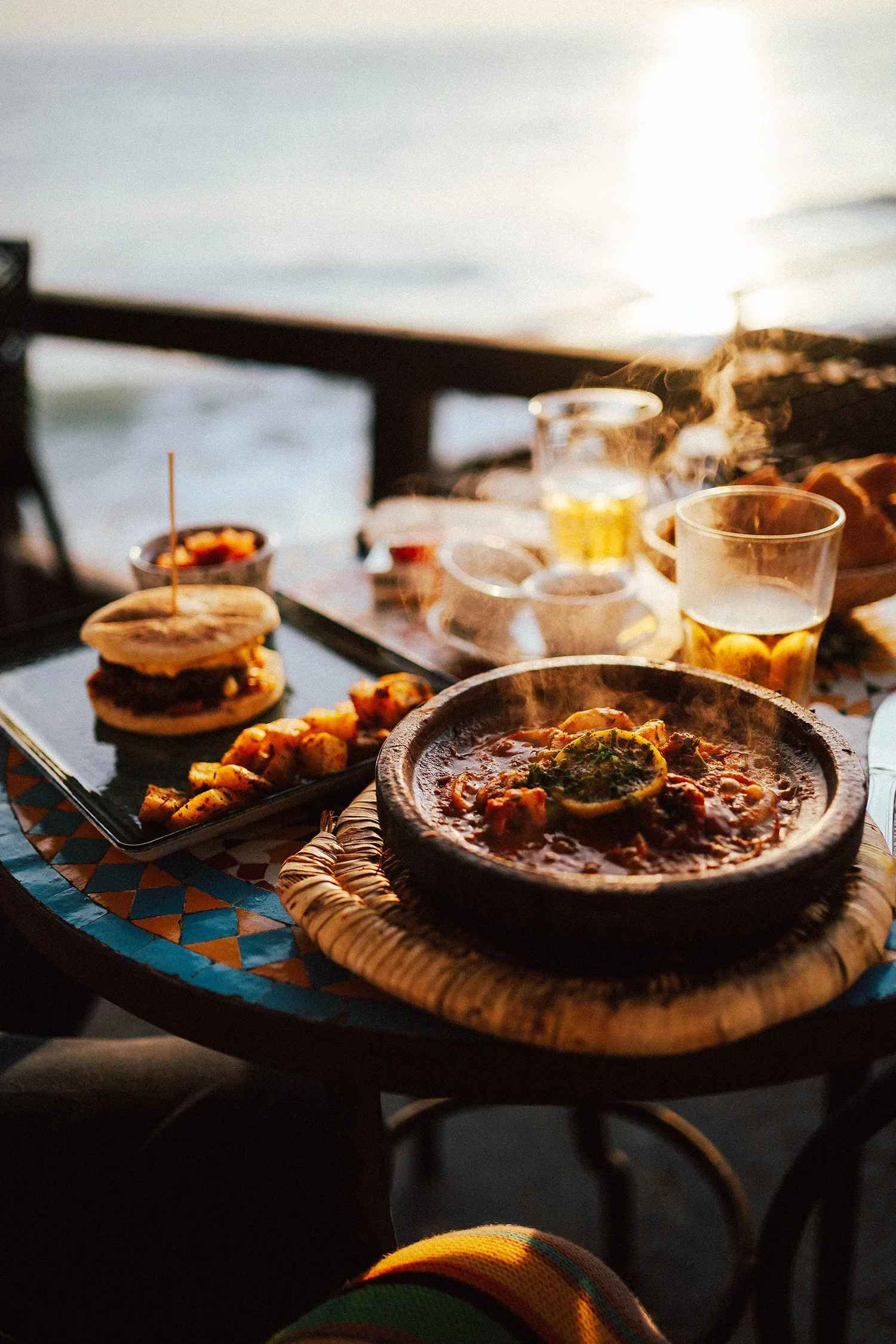 Lass dich von der Vielfalt der marokkanischen Küche begeistern! Ob beim Frühstück mit Blick auf die Wellen oder beim Abendessen mit landestypischen Gerichten – im Surfhouse kommt jeder geschmacklich auf seine Kosten.