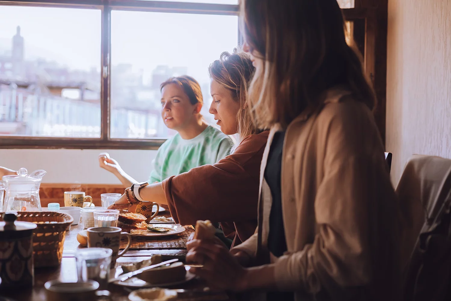 Am Abend verwöhnen dich unsere Köchinnen Fatima und Rakia (außer dienstags und freitags) mit traditionellen marokkanischen Gerichten wie Tajine und Couscous, frischen Salaten, gegrilltem Fleisch oder Fisch sowie köstlichen vegetarischen Optionen. Ihre Mahlzeiten sind ein echter Hit bei den Gästen! Dienstags und freitags hast du die Gelegenheit, die lokalen Restaurants in Taghazout, Tamraght oder Agadir zu entdecken und die marokkanische Küche in vollen Zügen zu genießen.