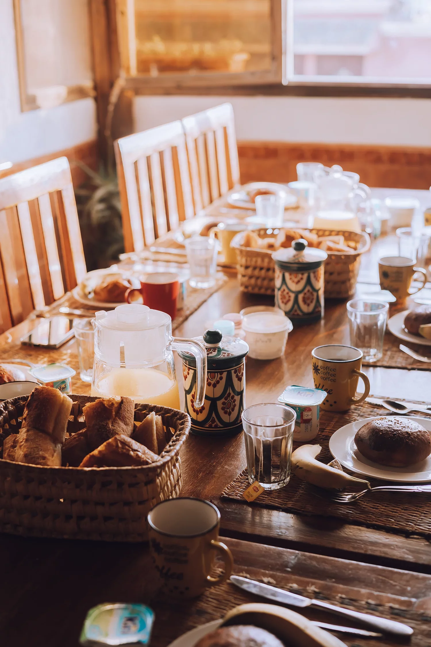 Starte deinen Tag mit einem reichhaltigen Frühstück auf unserer Terrasse mit Meerblick. Genieße frischen Kaffee, Tee, Säfte oder Smoothies, regionales Brot, Obst und andere marokkanische Spezialitäten.
