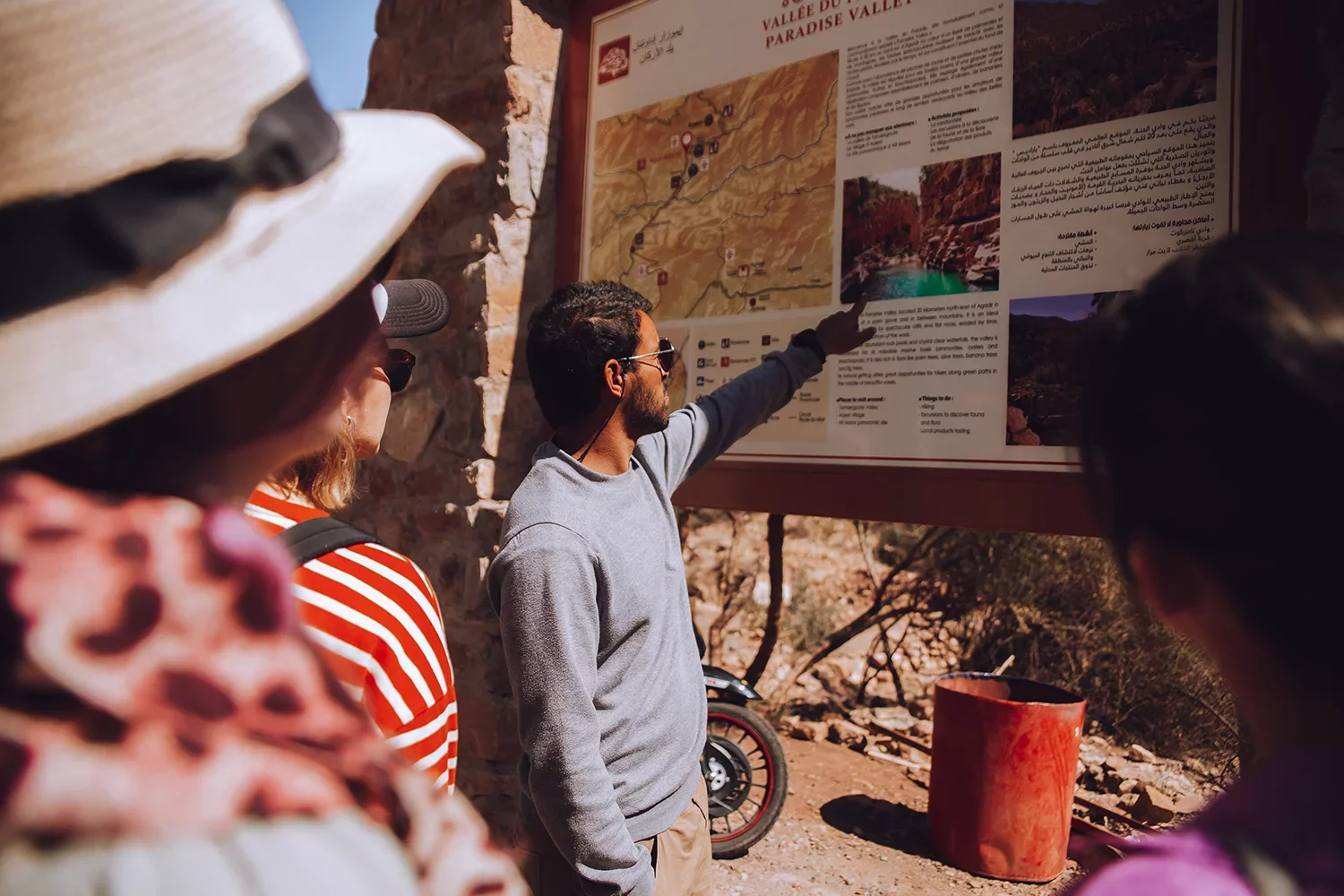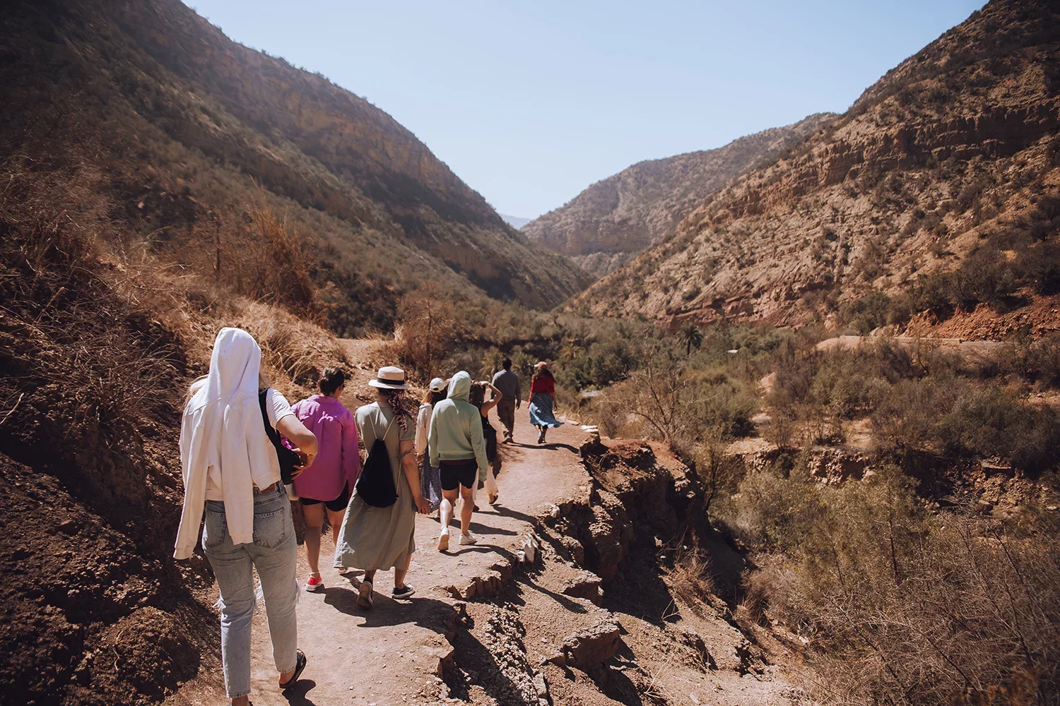 In nur 30 Minuten erreichst du das wunderschöne Paradise Valley im Atlasgebirge, ein palmengesäumtes Flusstal, das für seine türkisfarbenen Naturpools bekannt ist. Nach einer kurzen Wanderung gelangst du zu diesen versteckten Oasen, ideal zum Schwimmen, Springen oder einfach zum Entspannen im Schatten der Felsen. Dieses Tal ist ein wahres Juwel und ein Highlight, das seinem Namen alle Ehre macht.