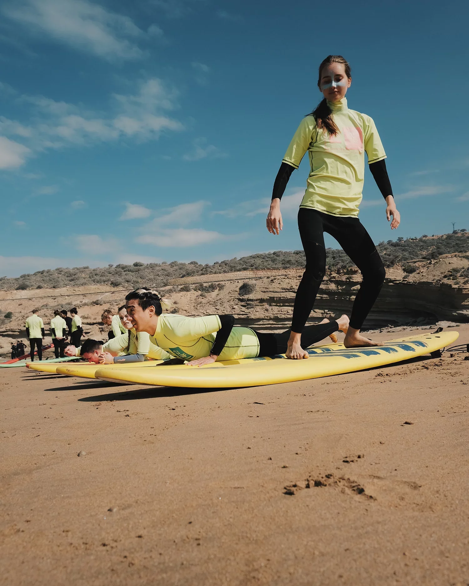 Eine Welle zu surfen ist eines der besten Gefühle der Welt! Ob Anfänger oder Fortgeschrittener – bei uns findest du den idealen Ort, um deine Surfskills zu verbessern. Mit täglichem Surfunterricht, qualifizierten Coaches und einer coolen Community erlebst du das Surfhouse-Feeling in seiner besten Form. Unser Surfprogramm wird individuell an dein Level angepasst, wobei maximal fünf Schüler auf einen Lehrer kommen.