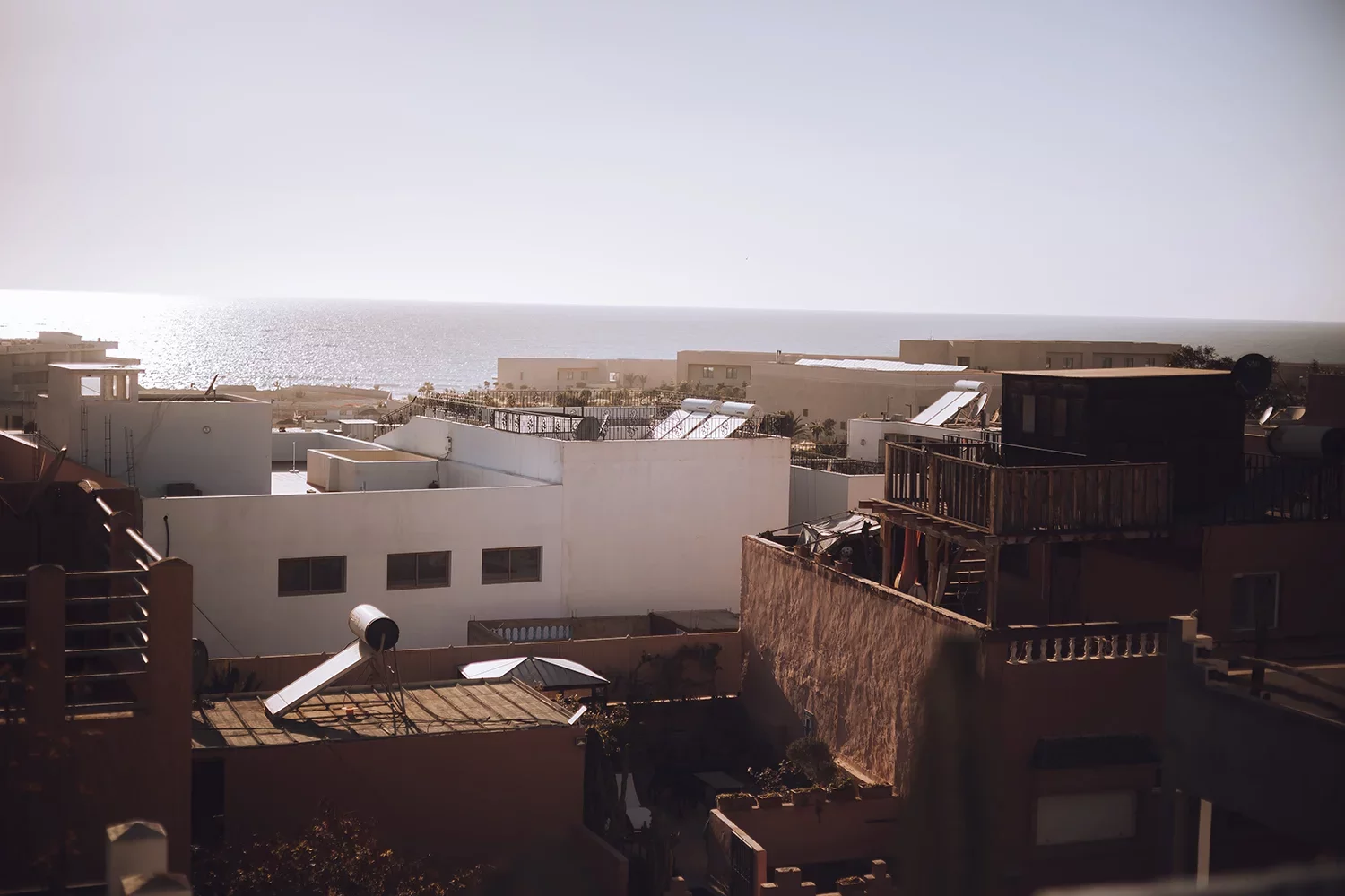 Tamraght, ein traditionelles marokkanisches Dorf, bietet lokale Läden, Surfshops, Cafés und Restaurants mit Meerblick. Alles für den Alltag – Supermarkt, Geldautomat und Apotheke – kannst du bequem zu Fuß erreichen. Der berühmte Skatepark in Taghazout ist auch nur 7km entfernt und immer einen Ausflug wert!