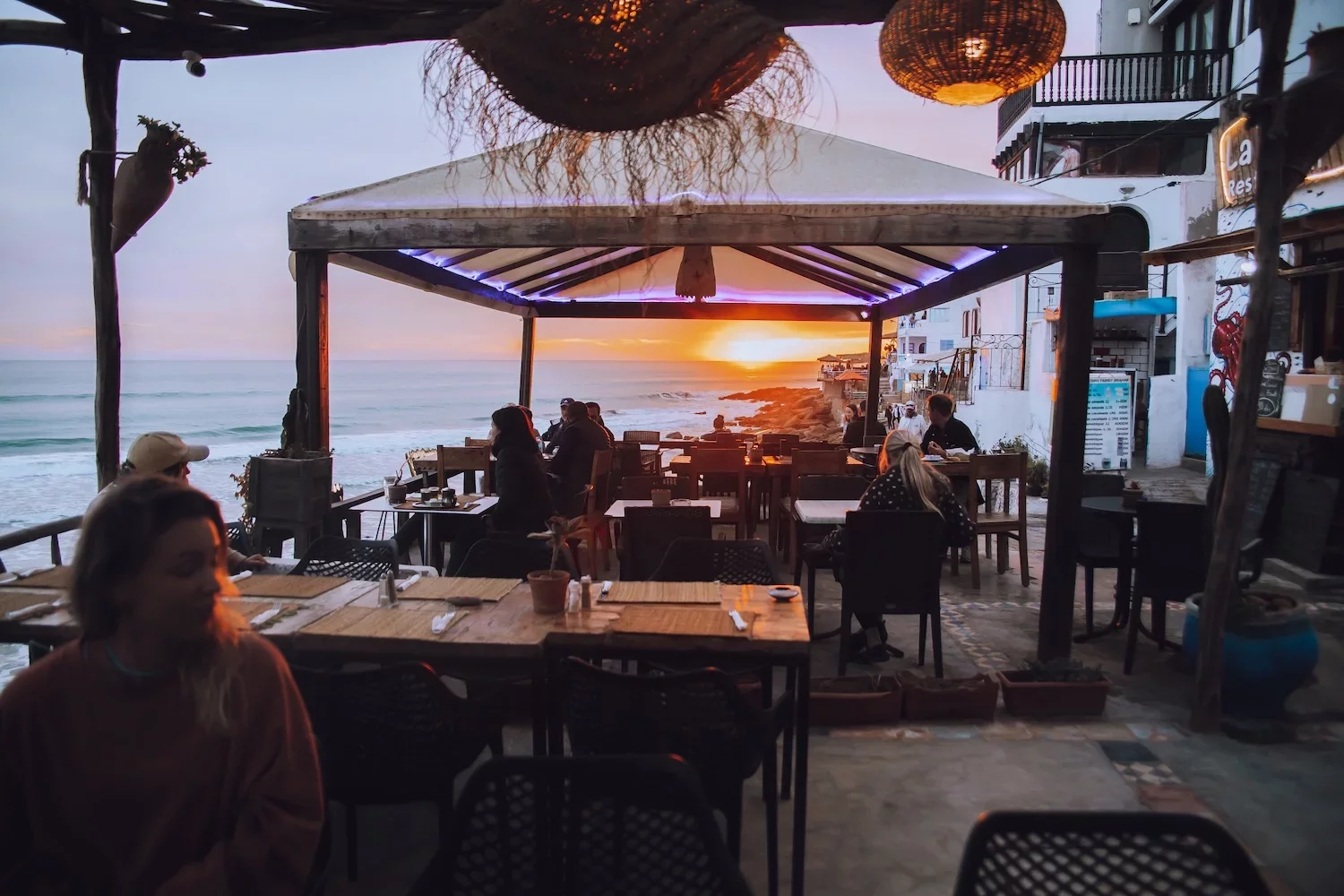 Für ein entspanntes Mittagessen direkt am Strand ist das Mouja Café in Taghazout ideal. Mit Blick auf den Atlantik kannst du hier den Wellen lauschen und frische Meeresfrüchte genießen. Besonders empfehlenswert: der gegrillte Fisch – fangfrisch, marokkanisch gewürzt und serviert mit knusprigem Brot und frischen Salaten. Die entspannte Atmosphäre macht das Café zum perfekten Ort, um nach dem Surfen oder Sonnenbaden neue Energie zu tanken.