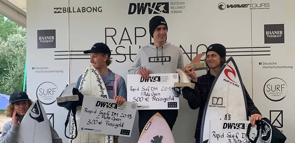 Janina Zeitler und Sebastian Steinbeck gewannen die Open Class und sicherten sich somit den ersten offiziellen Sieg im Rapid Surfing. Für alle Platzierten der Open Classes gab es Geldpreise im Gesamtwert von 2000€ zu gewinnen, die von den Hauptsponsoren Billabong, WAVETOURS und Haaner Felsenquelle ermöglicht wurden.