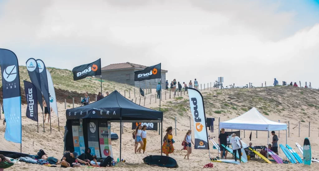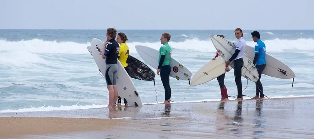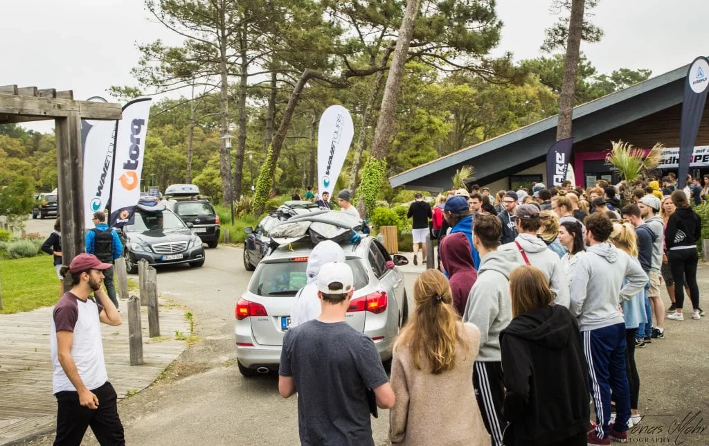 Around 1,250 students gathered at the Belambras facility in Seignosse on Saturday to choose Germany’s best surfing students. At 10 a.m. sharp, the crowd was so big that the line at reception stretched about 50 meters to the gate outside. After all the students had found their way to their bungalows, the heat sheets and competition information were published at the Riders Night in the evening.