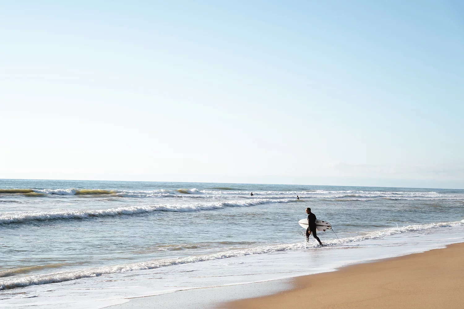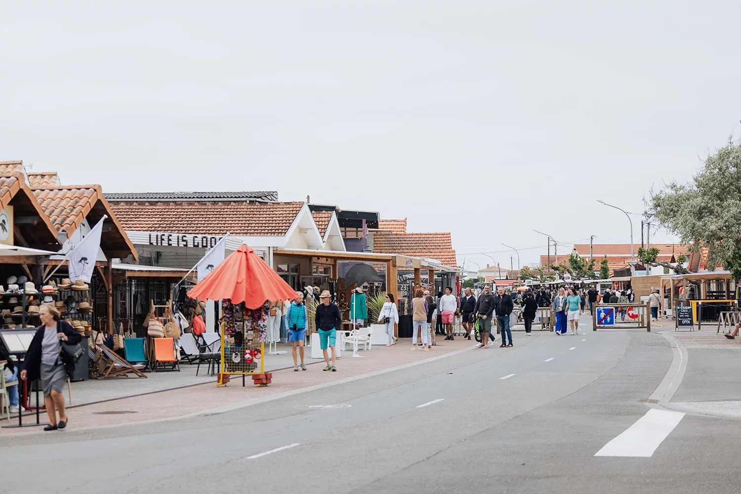 Auch abseits der Wellen lohnt sich ein Blick in die Umgebung. Der kleine Ort Montalivet-les-Bains liegt nur wenige Minuten entfernt – mit Surfshops, Restaurants, Bars und einem der schönsten Märkte der Region. Perfekt für einen Nachmittagsbummel oder einen Drink bei Sonnenuntergang.