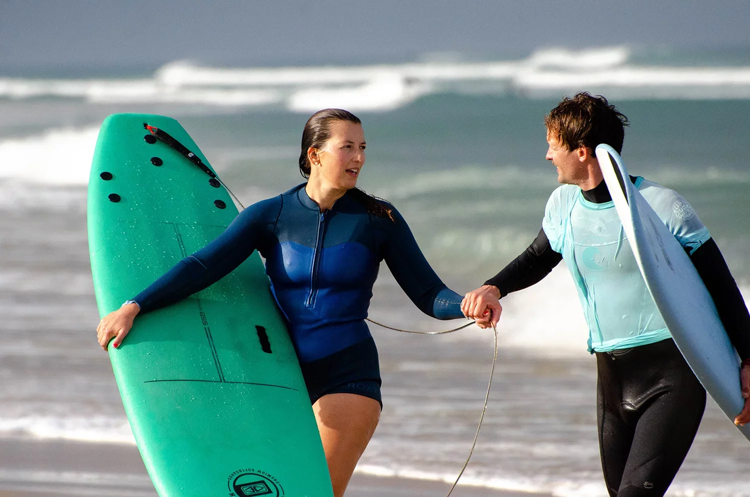 Für deinen Surfkurs bekommst du von uns ein Brett und einen Wetsuit in der passenden Größe – abgestimmt auf dein Level.