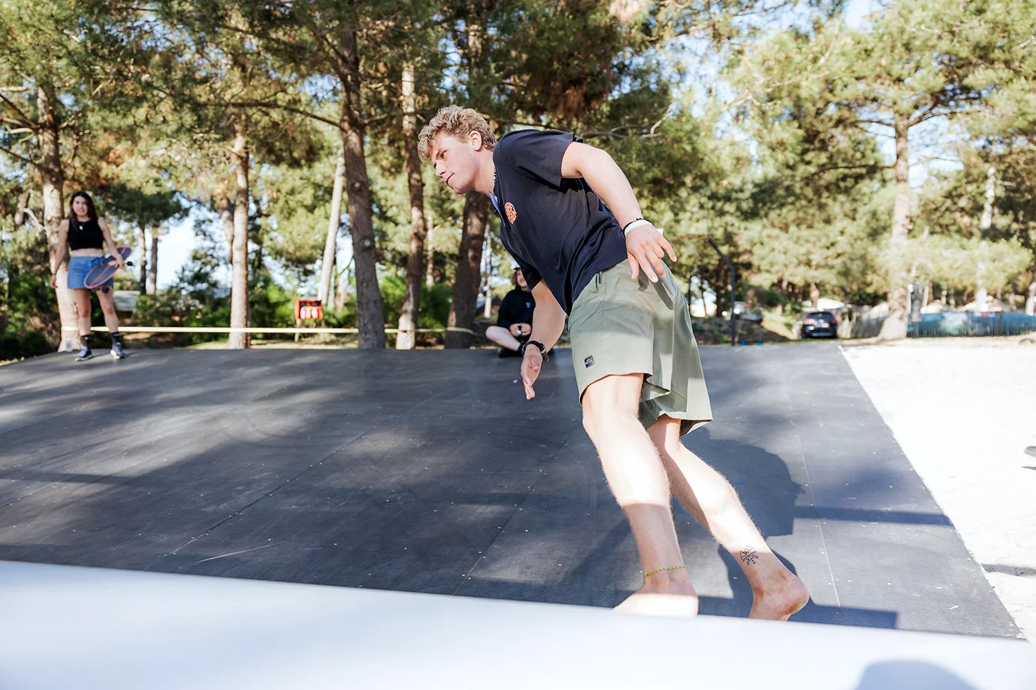 Unser Campareal wurde komplett neu aufgebaut und ist auf moderne Bedürfnisse zugeschnitten. Der zentrale Treffpunkt ist unsere überdachte Chill- und Essensarea mit integrierter Bar – ideal zum Zusammenkommen, Essen und Entspannen. Für Bewegung zwischendurch gibt’s Kicker, Roundnet, Tischtennis und Surfskates, mit denen du auf dem Platz cruisen oder deine Balance trainieren kannst. Wer noch Energie übrig hat: Auf dem Campingplatz steht auch eine Miniramp zur freien Nutzung bereit.