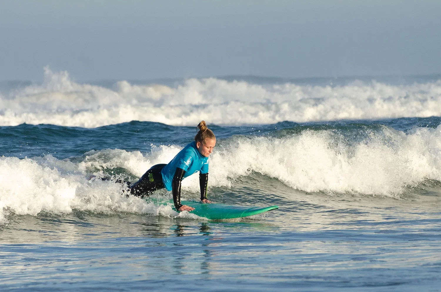 Hier wird’s grün: Du hast schon Lineup-Erfahrung und willst deine Skills weiter ausbauen? Wir arbeiten an Manövern, verbessern deinen Flow und helfen dir, noch selbstbewusster in den Wellen zu werden.