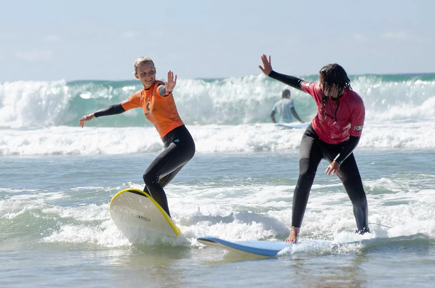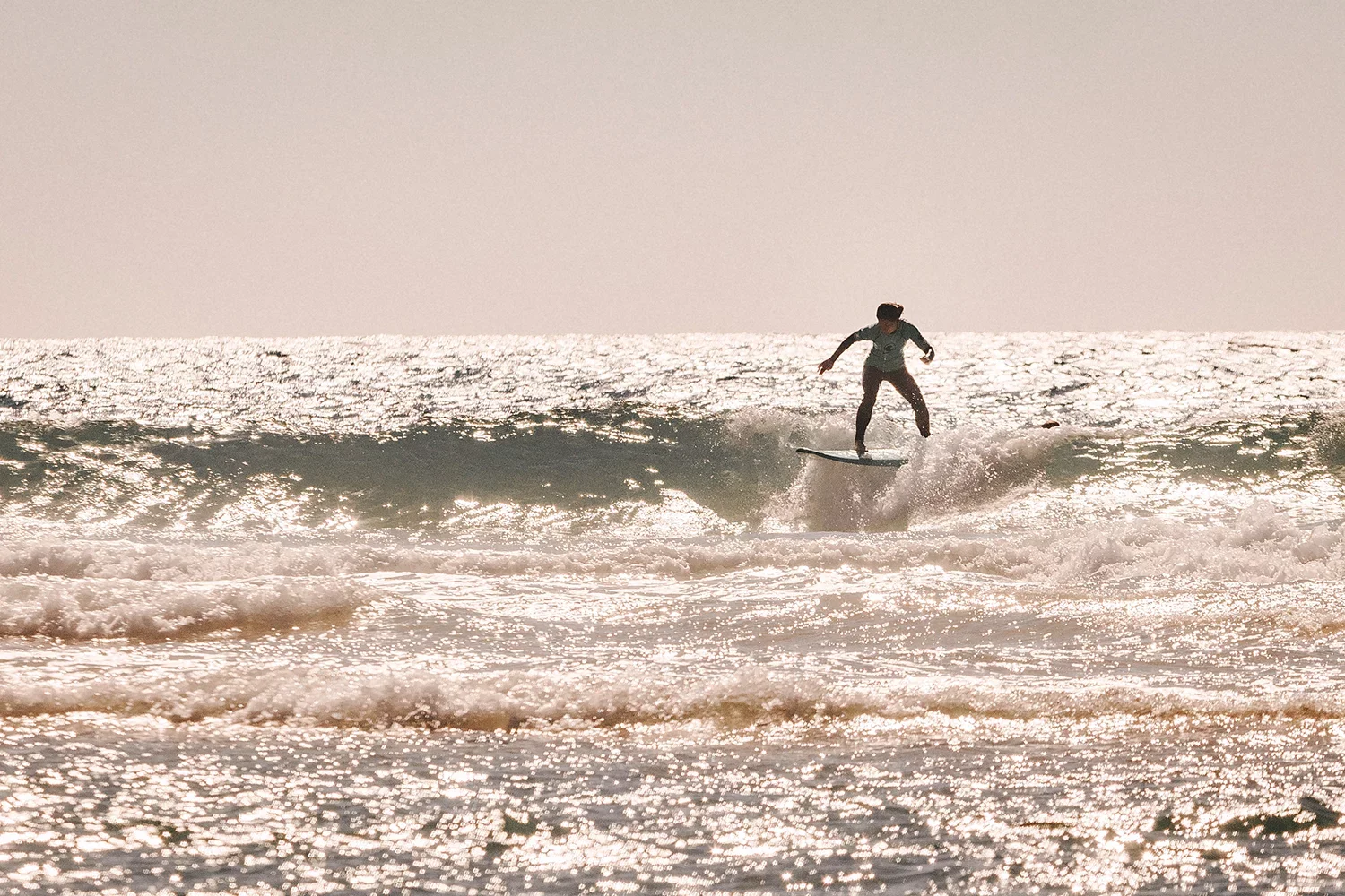Noch nie auf dem Brett gestanden? Kein Problem. Du lernst in sicherem Wasser das Gleitgefühl, Pop-Up, erste Take-Offs und wie du dich im Lineup zurechtfindest. Unser Ziel: Spaß und erste Wellen bis an den Strand.