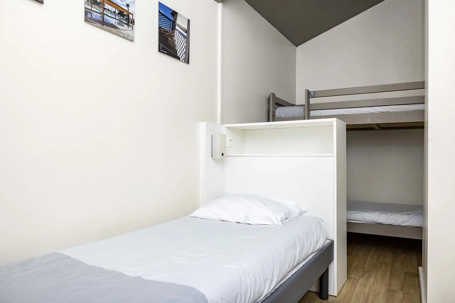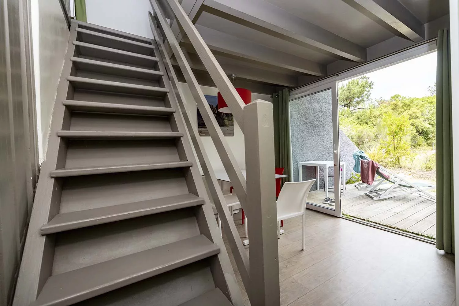 Mit einem Doppelzimmer, ausgestattet mit einem Doppelbett für 2 Personen, und einem Schlafzimmer, ausgestattet mit einem Stockbett (für 2 Personen) und einem Einzelbett, bieten diese Bungalows im Pinienwald viel Platz und Komfort.