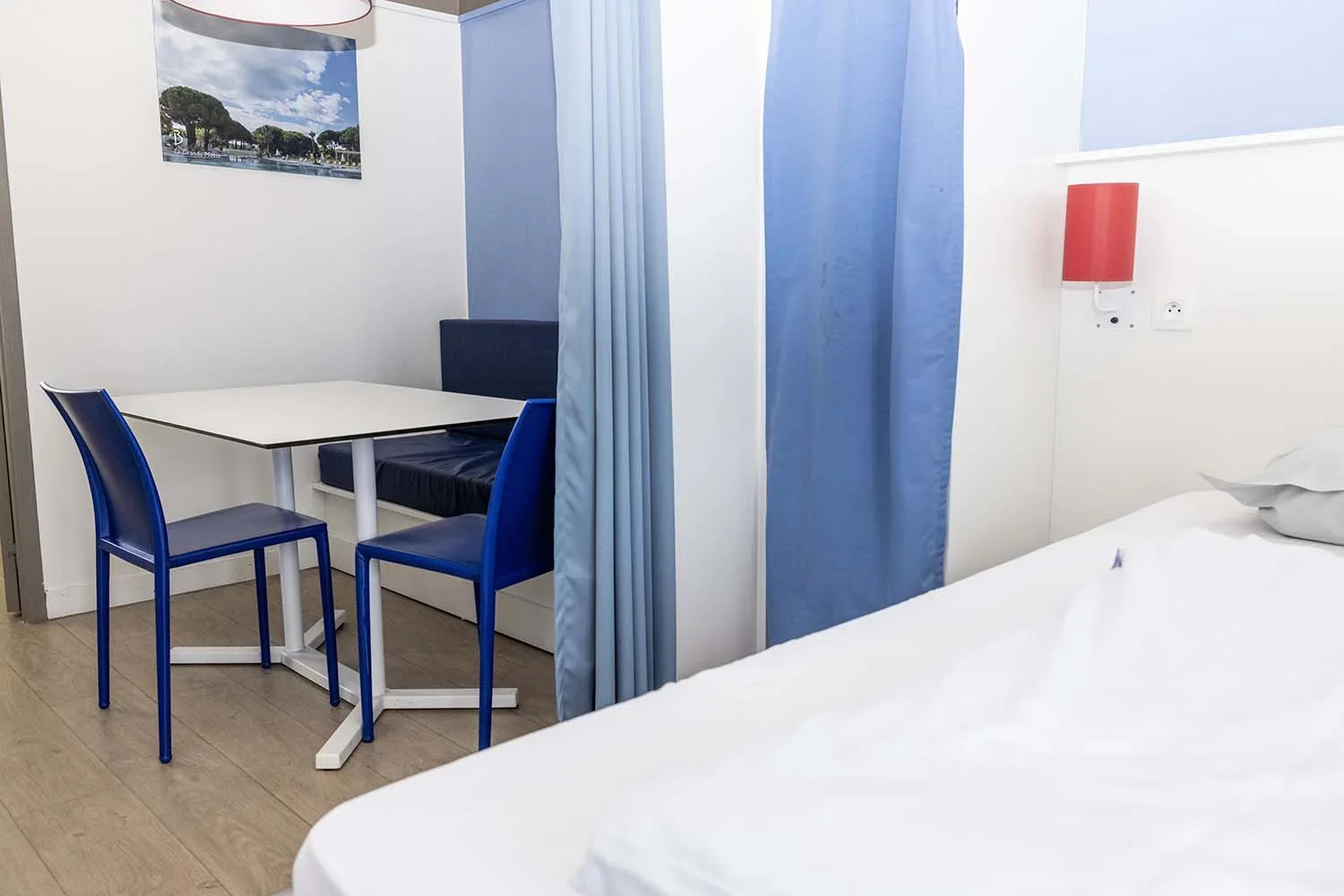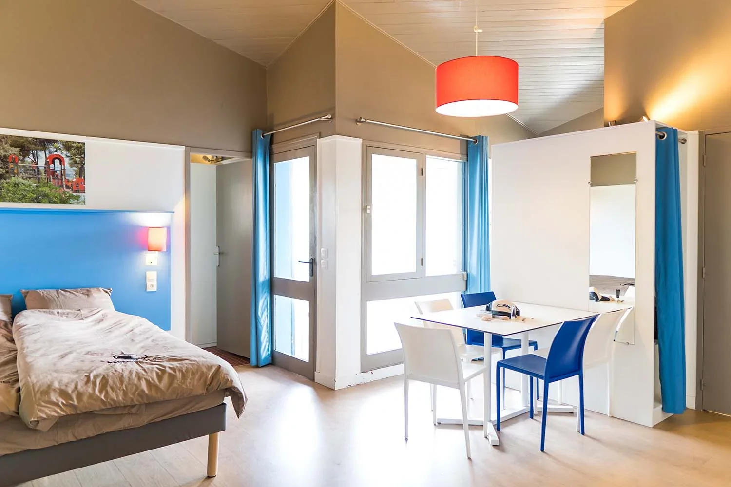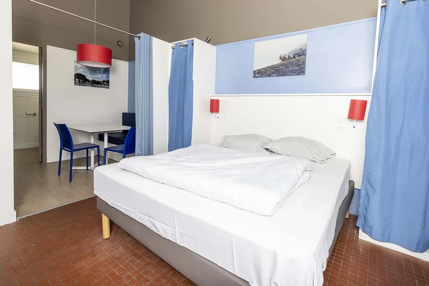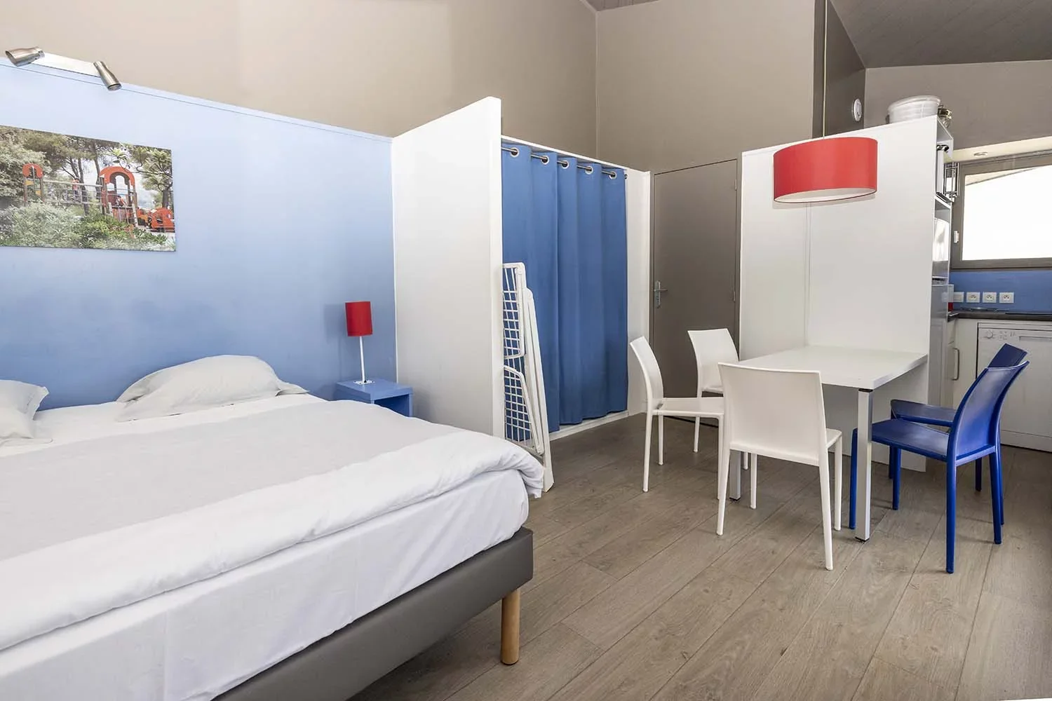 Diese Studios hinter der Düne haben einen Wohnraum mit integrierter Küche und ein Doppelbett – perfekt für zwei Freunde oder ein Pärchen, die sich etwas mehr Privatsphäre wünschen!