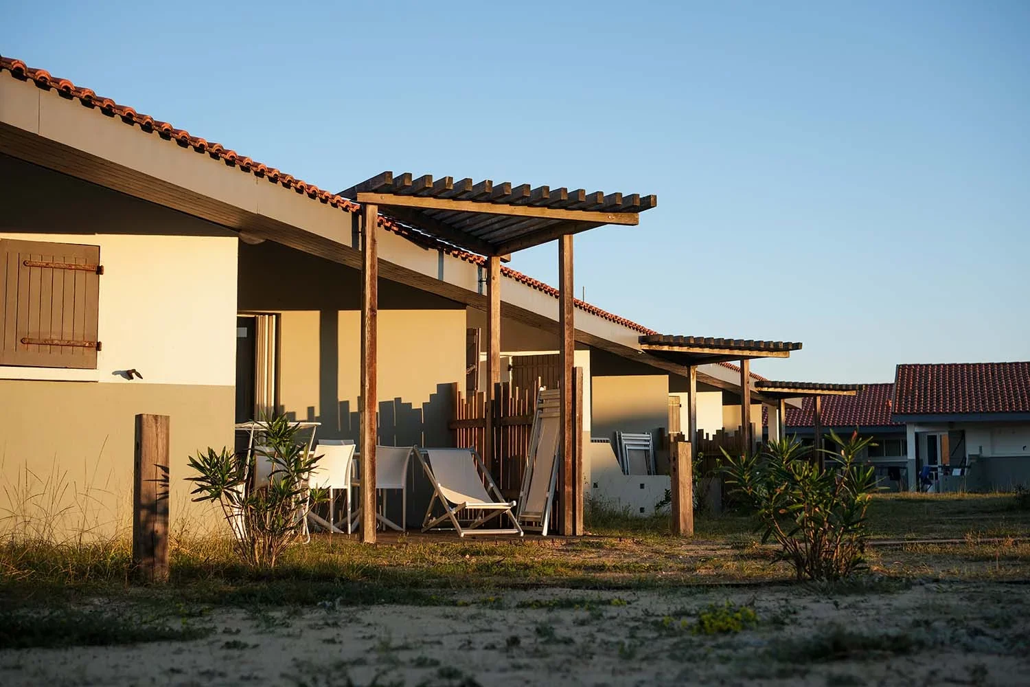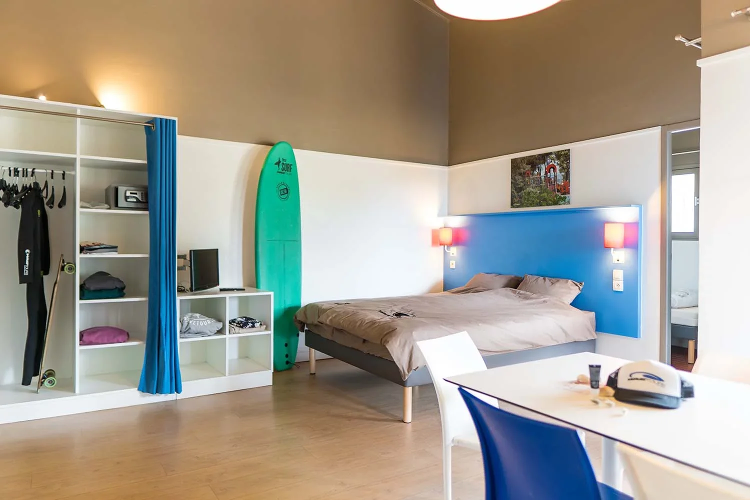 Während der SURFERSWEEK wohnst du in gemütlichen 2er Studios, 4er Chalets/Bungalows oder 5er und 6er Bungalows – perfekt für einen entspannten Surfurlaub. Alle Unterkünfte bieten optimalen Komfort und verfügen über ein eigenes Bad mit Dusche und WC, eine voll ausgestattete Küchenzeile und eine großzügige Terrasse mit Gartenmöbeln.